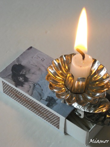 ..fyrstikkeska har Moa laga, og så fikk jeg et aldeles nydlig kort av henne som jeg ikke fikk noe godt bilde av...lysestaken er kjøpt på bruktbutikk her i Bergen..